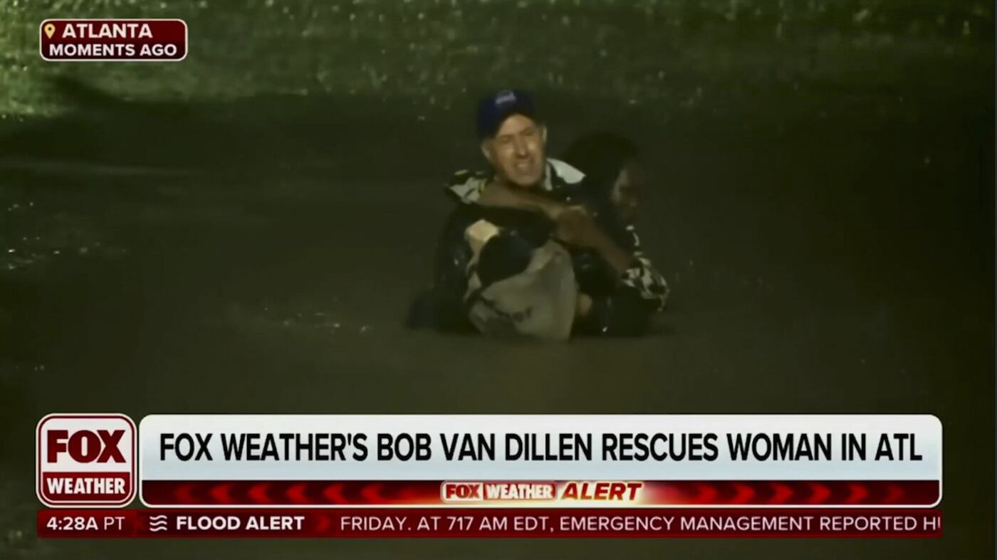 A weather TV reporter in Atlanta interrupted his live report about Hurricane Helene Friday to rescue a woman from a vehicle stranded by rising floodwaters.