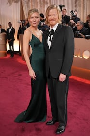 Kirsten Dunst, left, and Jesse Plemons arrive at the 83rd Golden Globes on Sunday, Jan. 11, 2026, at the Beverly Hilton in Beverly Hills, Calif. (Photo by Jordan Strauss/Invision/AP)