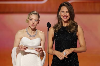 This image released by CBS Broadcasting shows presenters Amanda Seyfried, left, and Jennifer Garner during the 83rd Golden Globes on Sunday, Jan. 11, 2026, at the Beverly Hilton in Beverly Hills, Calif. (Kevork Djansezian/CBS Broadcasting via AP)