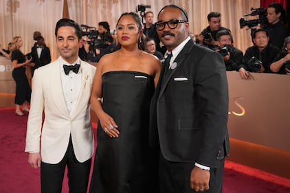 Sev Ohanian, from left, Zinzi Evans, and Ryan Coogler arrive at the 83rd Golden Globes on Sunday, Jan. 11, 2026, at the Beverly Hilton in Beverly Hills, Calif. (Photo by Jordan Strauss/Invision/AP)