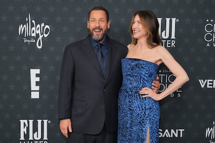 Adam Sandler, left, and Jackie Sandler arrive at the 31st Annual Critics Choice Awards on Sunday, Jan. 4, 2026, at The Barker Hanger in Santa Monica, Calif. (Photo by Jordan Strauss/Invision/AP)