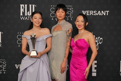 Arden Cho, from left, May Hong and Ji-young Yoo pose with the award for best animated feature for "KPop Demon Hunters" in the press room during the 31st Annual Critics Choice Awards on Sunday, Jan. 4, 2026, at The Barker Hanger in Santa Monica, Calif. (Photo by Jordan Strauss/Invision/AP)