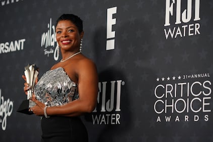 Janelle James, winner of the award for best supporting actress in a comedy series for "Abbott Elementary," poses in the press room during the 31st Annual Critics Choice Awards on Sunday, Jan. 4, 2026, at The Barker Hanger in Santa Monica, Calif. (Photo by Jordan Strauss/Invision/AP)