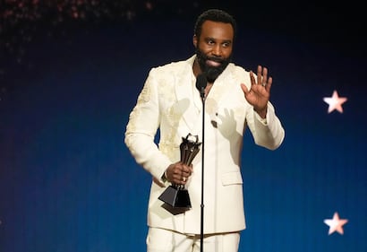 Tramell Tillman accepts the award for best supporting actor in a drama series for "Severance" during the 31st Annual Critics Choice Awards on Sunday, Jan. 4, 2026, at The Barker Hanger in Santa Monica, Calif. (AP Photo/Chris Pizzello)