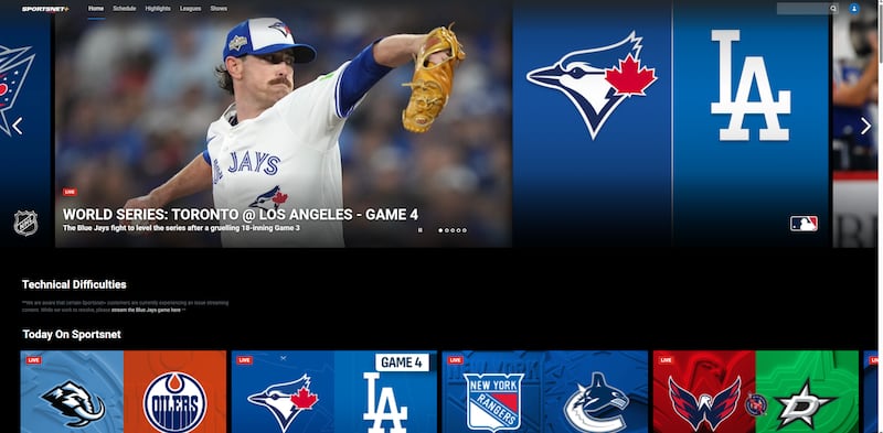 Rogers Sportsnet+ suffered major streaming issues Tuesday night during Game 4 of the World Series between the Toronto Blue Jays and Los Angeles Dodgers.