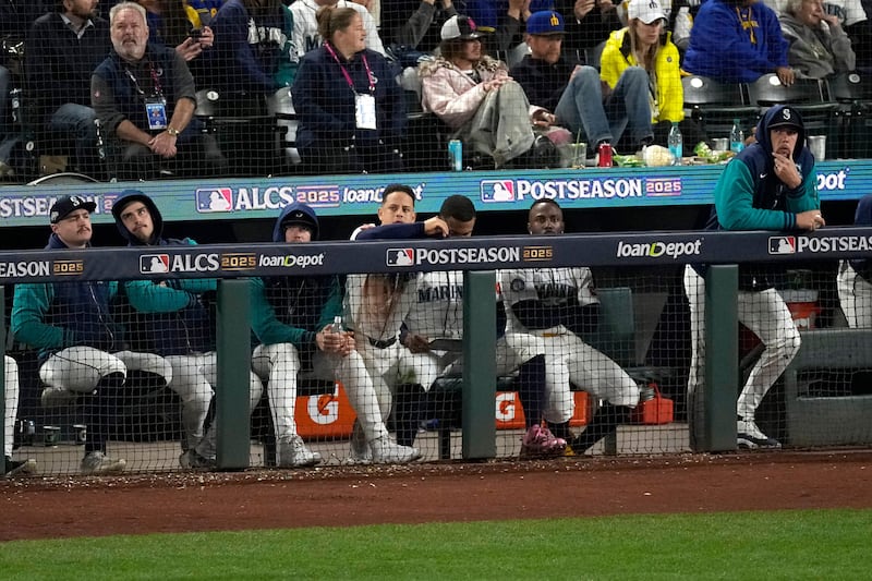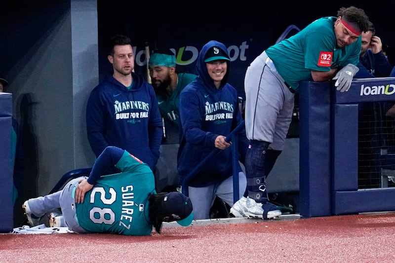 Suárez agues a called strike three Seattle Mariners' Eugenio Suárez argues a called strike three with home plate umpire Quinn Wolcott during the eighth inning in Game 7 of baseball's American League Championship Series against the Toronto Blue Jays, Monday, Oct. 20, 2025, in Toronto. (David J. Phillip/AP)
