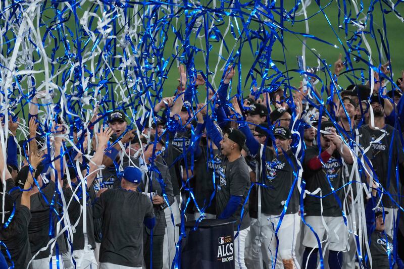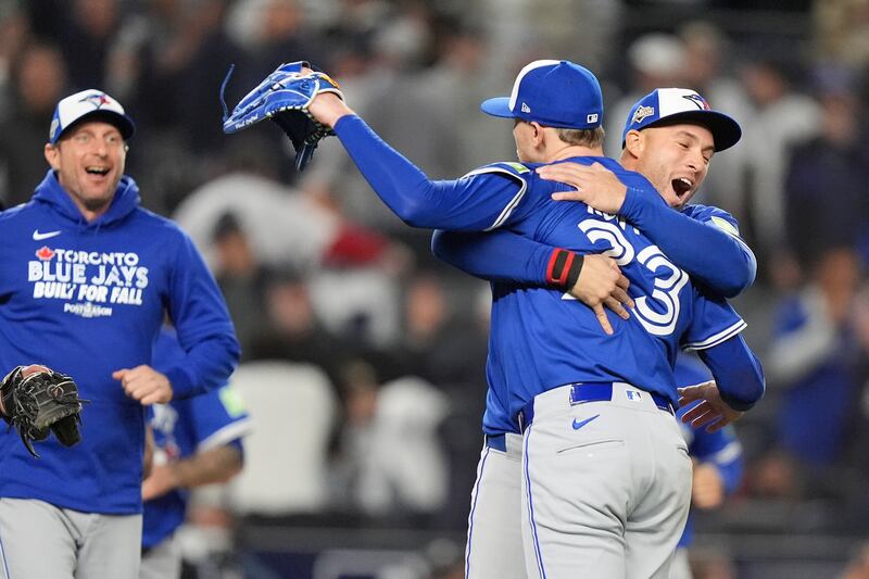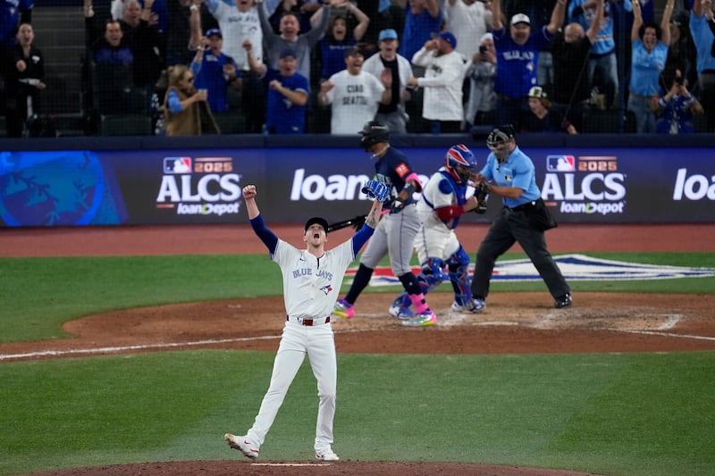 Blue Jays win the American League pennant The Toronto Blue Jays celebrate after Game 7 of baseball's American League Championship Series against the Seattle Mariners, Monday, Oct. 20, 2025, in Toronto. (David J. Phillip/AP)