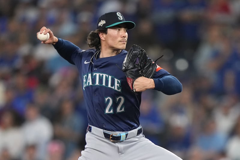 Woo enters in relief for the Mariners Seattle Mariners pitcher Bryan Woo (22) delivers a pitch against the Toronto Blue Jays during fifth inning MLB American League Championship Series game 7 baseball action in Toronto, Monday, Oct. 20, 2025. (Nathan Denette/THE CANADIAN PRESS)