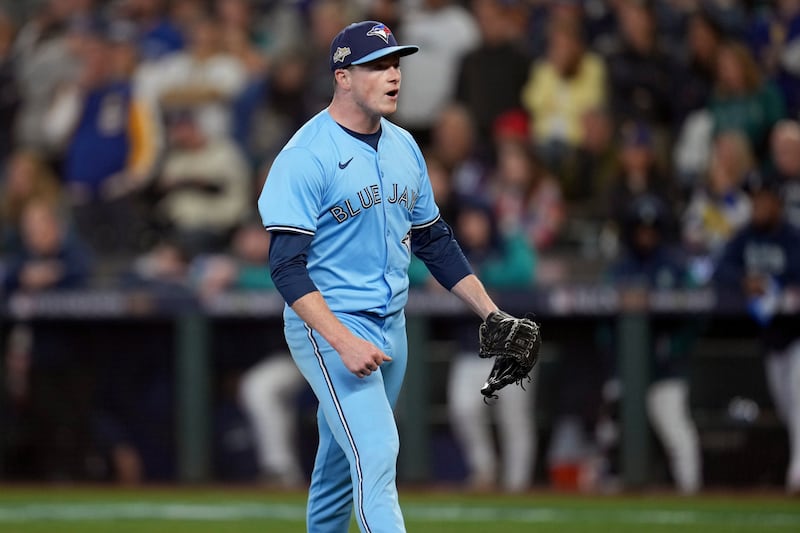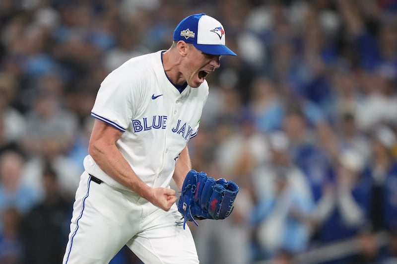 Hoffman dominates the eight and ninth Toronto Blue Jays pitcher Jeff Hoffman (23) reacts after the final out of MLB American League Championship Series game 6 baseball action against the Seattle Mariners in Toronto, Sunday, Oct. 19, 2025. (Nathan Denette/THE CANADIAN PRESS)