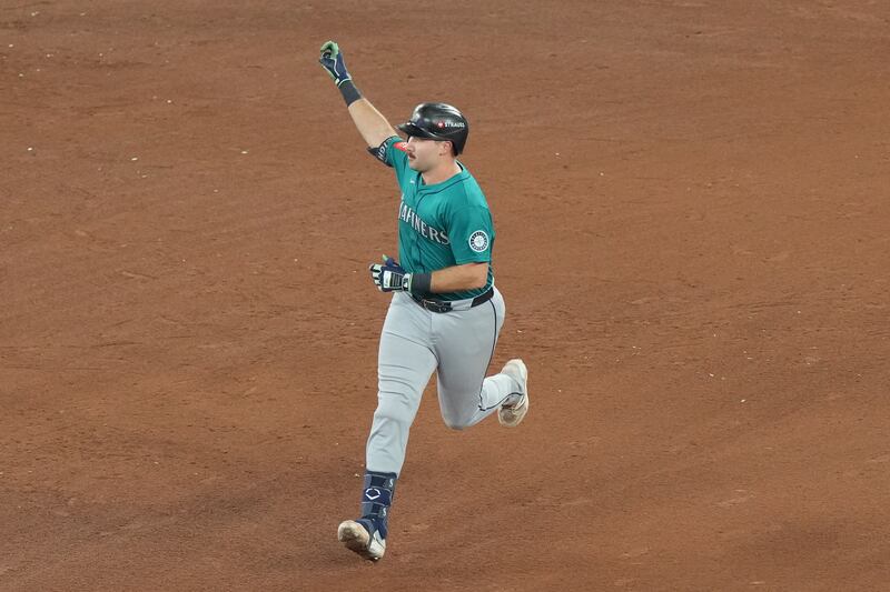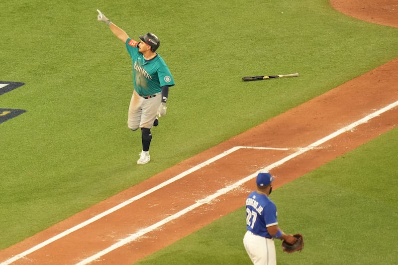 Raleigh homer widens Mariners' lead Seattle Mariners' Cal Raleigh celebrates his solo home run off Toronto Blue Jays pitcher Louis Varland during the fifth inning in Game 7 of baseball's American League Championship Series, Monday, Oct. 20, 2025, in Toronto. (David J. Phillip/AP)
