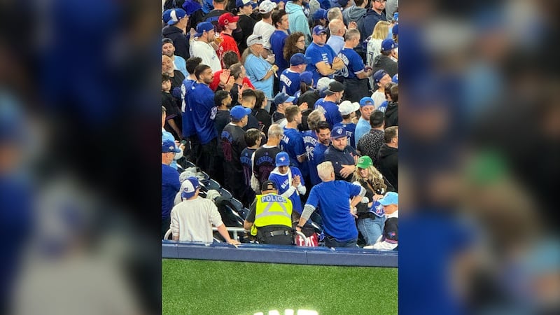 Blue Jays fans go wild after Springer's homer Toronto Blue Jays fans react after the team scored against the Seattle Mariners to win the American League Championship Series, in Toronto, Monday, Oct. 20, 2025. (Laura Proctor/The Canadian Press)