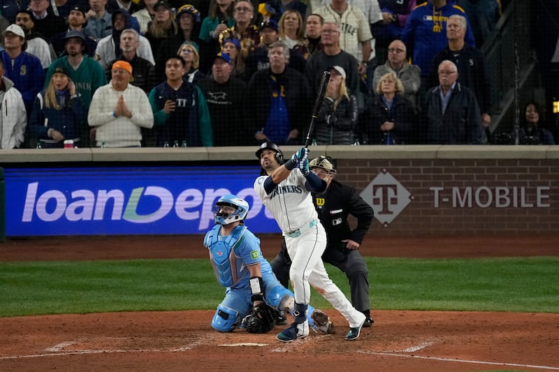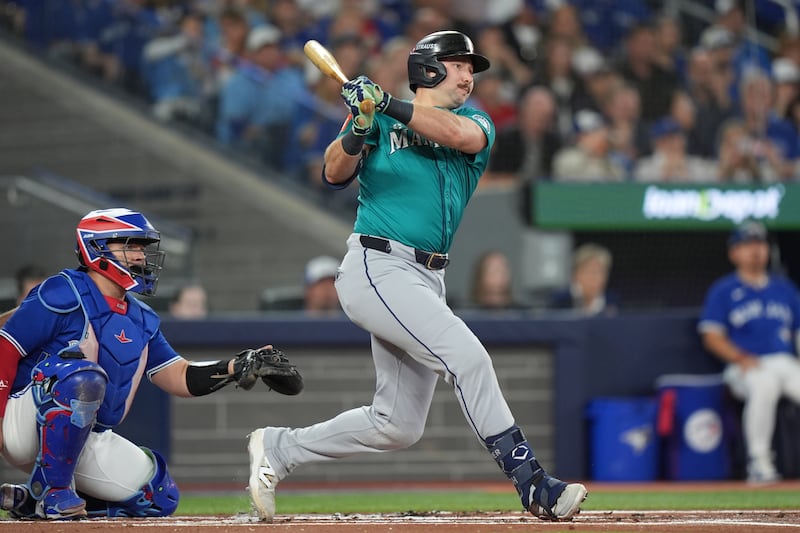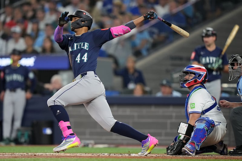 Rodríguez scores again Seattle Mariners' Julio Rodríguez (44) hits a solo home run against the Toronto Blue Jays during third inning MLB American League Championship Series game 7 baseball action in Toronto, Monday, Oct. 20, 2025. (Nathan Denette/THE CANADIAN PRESS)