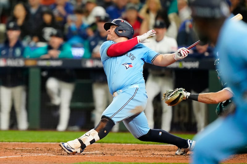 Clement on board with a triple Toronto Blue Jays' Ernie Clement (22) hits a triple against the Seattle Mariners during third inning MLB American League Championship Series game 6 baseball action in Toronto, Sunday, Oct. 19, 2025. (Frank Gunn/THE CANADIAN PRESS)