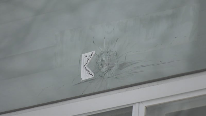 Multiple bullet holes – at least four in the front window – can be seen at another nearby home, which was shot up less than three hours later.