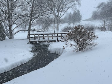 A viewer shows off their front yard covered in snow on the morning of Jan. 15, 2026 in this image provided to CP24.