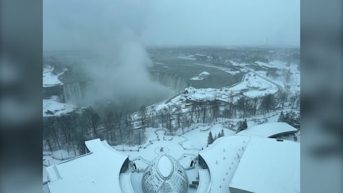 Snow covers Niagara Falls, Ontario after snowstorm on January 15, 2026 in this image provided to CP24.