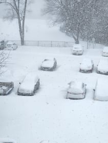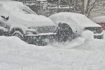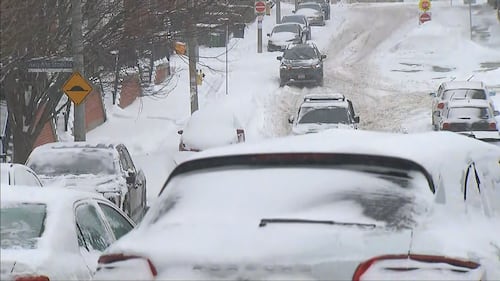 Snow partially buries vehicles in a parking lot on January 15, 2026 in this image provided to CP24.