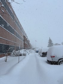 Snow blankets the ground outside the CTV News studio on the morning of January 15, 2026. (Lyndsay Morrison, CTV News Toronto weather anchor)