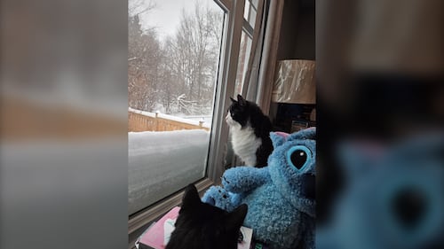 Cat looks from window to view the aftermath of the snowstorm in southern Ontario on January 15, 2026 in this image provided to CP24.