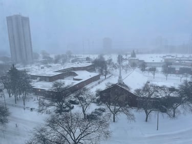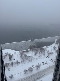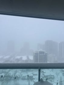 The view from a Toronto condo building near Yonge and Sheppard shows the near whiteout conditions on Jan. 15, 2026.
