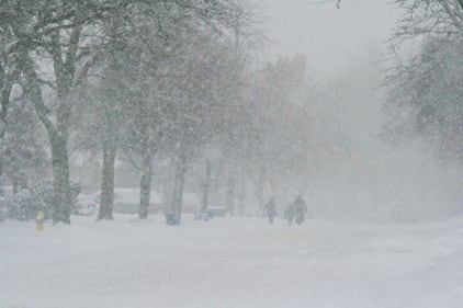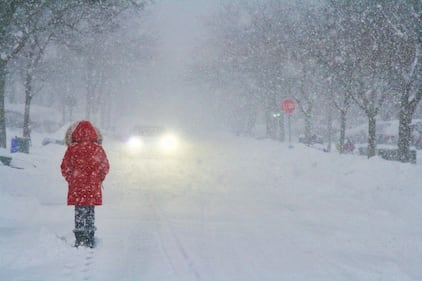 A woman and her children walk on the road as a major winter snowstorm hits in Toronto. (Creative Touch Imaging Ltd./NurPhoto via Getty Images)
