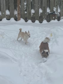 Dogs Ace and Migo enjoying playing in the snow on January 15, 2026 in this image provided to CP24.