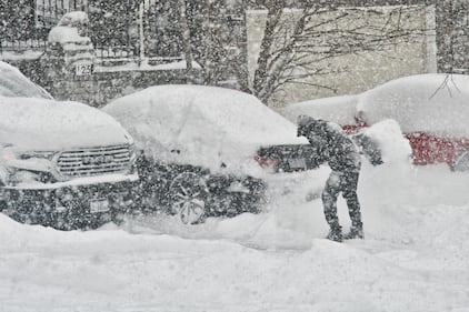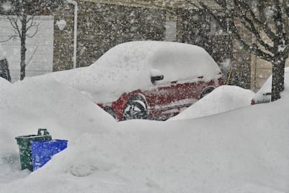 A vehicle is covered in snow as a major winter snowstorm hits in Toronto on Jan. 15, 2026. The storm was expected to drop up to 35 cm of snow across the Greater Toronto Area. (Creative Touch Imaging Ltd./NurPhoto via Getty Images)