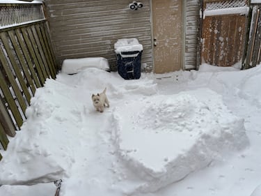 A small dog enjoys the path its owner carved in the backyard on January 15, 2026 in this image provided to CP24.