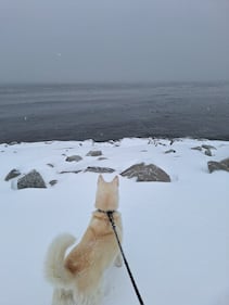 A dog looks out toward Lake Ontario on January 15, 2026 in this image provided to CP24.