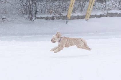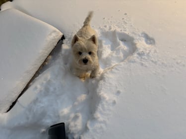 A dog enjoying the fresh snow in their backyard on January 15, 2026 in this image provided to CP24.