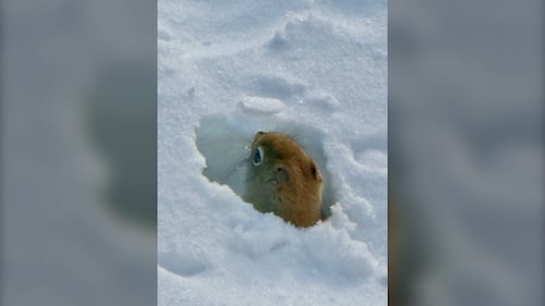 A squirrel pops their head out from under the snow after the snowstorm in southern Ontario on January 15, 2026 in this image provided to CP24.