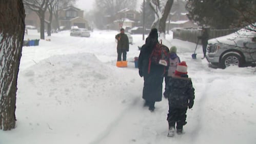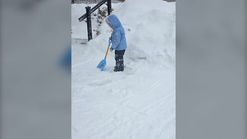 Child shovels snow after the winter storm hit southern Ontario on January 15, 2026 in this image provided to CP24.
