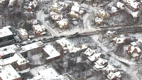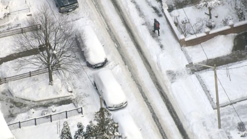 A snow-covered street on January 15, 2026 in this image provided to CP24.