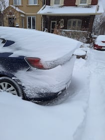 Vehicle partially buried under snow on January 15, 2026 in this image provided to CP24.