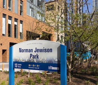 Jewison’s presence was so entrenched in the building, that a small park adjacent to the property is now named Norman Jewison Park. He was known to frequent the green space with his golden retriever, Barney, and according to Sotheby’s, was the driving force behind the city installing a dog fountain there. (Sotheby's International Realty)
