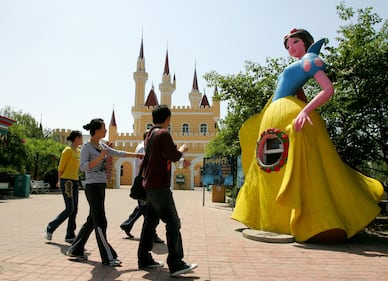 Locals visit the theme park during its opening on Oct. 27, 2010.