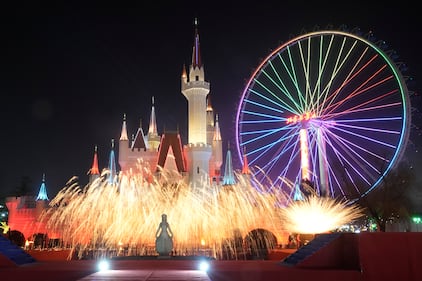 A structure similar to Sleeping Beauty’s Castle can be seen at the park and also Disney characters and other trademarked entities could be found around the facility like Snow White, Shrek and Buggs Bunny