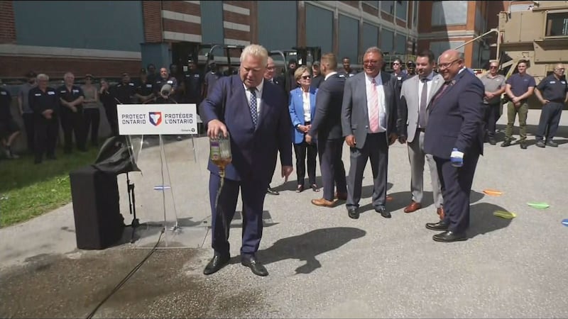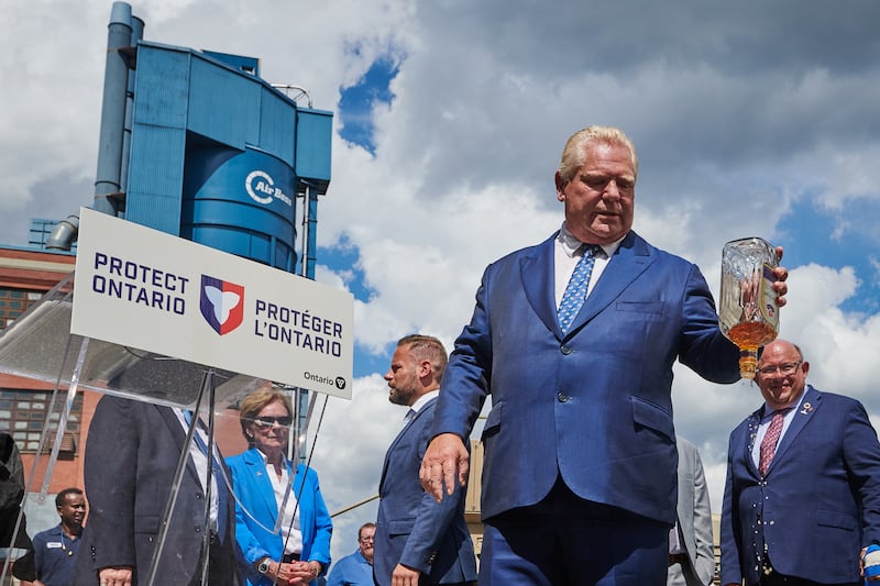 “This is what I think about Crown Royal. That’s what they could do. And I think everyone else should do the same thing,” Ford said as the amber liquid slowly emptied out of the bottle. “Start supporting companies that make whisky here in Ontario, people. That’s what we need to do, is support each other.”