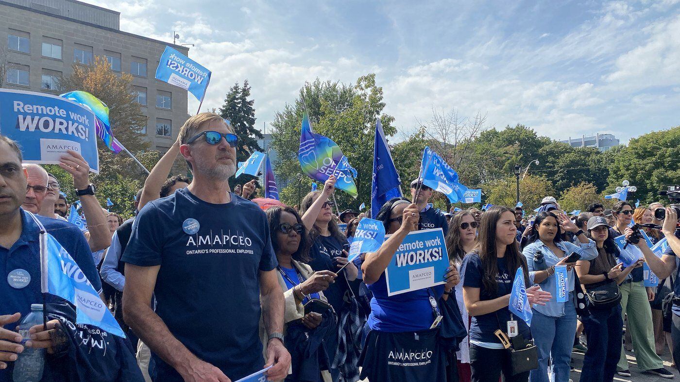 TORONTO — Hundreds of public servants rallied outside Queen’s Park on Thursday to protest the province’s return-to-office mandate, in the latest outcry from Canadian workers opposed to the waning of pandemic-era hybrid work arrangements across multiple sectors.