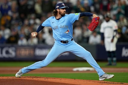 Gausman takes the mound Toronto Blue Jays pitcher Kevin Gausman (34) throws against the Seattle Mariners during first inning American League Championship Series baseball action in Toronto on Sunday, Oct. 12, 2025. THE CANADIAN PRESS/Frank Gunn