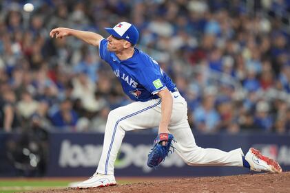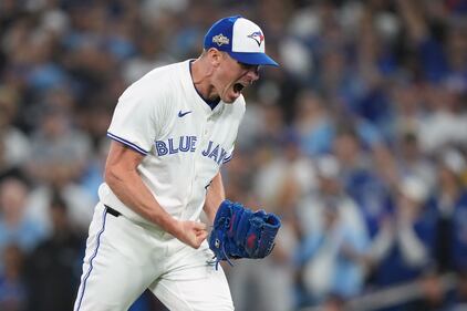 Blue Jays vs Yankees Toronto Blue Jays pitcher Jeff Hoffman (23) celebrates after defeating the New York Yankees in game 1 in MLB American League Division Series baseball action in Toronto on Saturday, October 4, 2025. THE CANADIAN PRESS/Nathan Denette