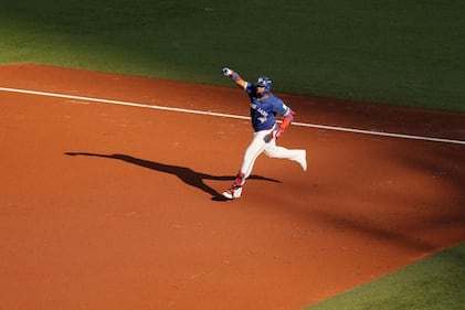 Rodríguez gets the Mariners on the board first Seattle Mariners' Julio Rodríguez celebrates his two run home run against the Toronto Blue Jays during the first inning in Game 3 of baseball's American League Championship Series, Wednesday, Oct. 15, 2025, in Seattle. (Lindsey Wasson/AP)