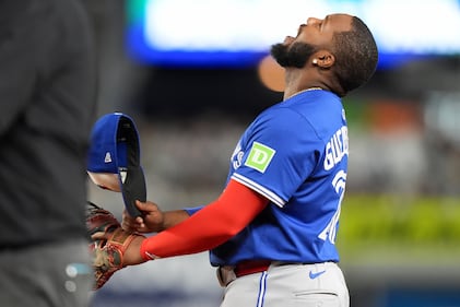 Blue Jays vs Yankees Toronto Blue Jays' Vladimir Guerrero Jr. is sprayed with Gatorade after defeating the New York Yankees in game 1 in MLB American League Division Series baseball action in Toronto on Saturday, October 4, 2025. THE CANADIAN PRESS/Nathan Denette