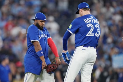 Hoffman dominates the eight and ninth Toronto Blue Jays pitcher Jeff Hoffman (23) reacts after the final out of MLB American League Championship Series game 6 baseball action against the Seattle Mariners in Toronto, Sunday, Oct. 19, 2025. (Nathan Denette/THE CANADIAN PRESS)