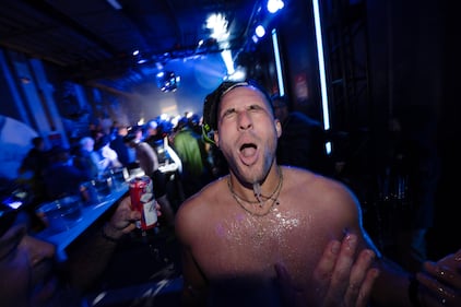Blue Jays players down beer in the clubhouse Toronto Blue Jays' Daulton Varsho celebrates in the clubhouse after defeating the Seattle Mariners in MLB American League Championship Series game 7 baseball action in Toronto, Monday, Oct. 20, 2025. (Frank Gunn/THE CANADIAN PRESS)
