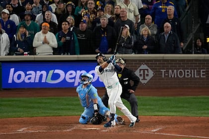 Polanco goes yard Seattle Mariners Jorge Polanco connects for a three run home run off Toronto Blue Jays pitcher Louis Varland (77) during the fifth inning in Game 2 of baseball's American League Championship Series, Monday, Oct. 13, 2025, in Toronto. (David J. Phillip/AP)