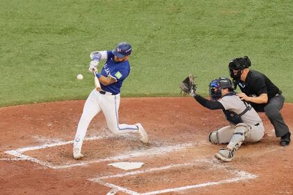 Toronto Blue Jays' Alejandro Kirk Toronto Blue Jays' Alejandro Kirk (30) hits a solo home run during the second inning of game 1 in MLB American League Division Series baseball action against the New York Yankees in Toronto on Saturday, October 4, 2025. THE CANADIAN PRESS/Chris Young