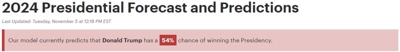 The Hill’s Decision Desk HQ has Trump winning 54 per cent of the time.